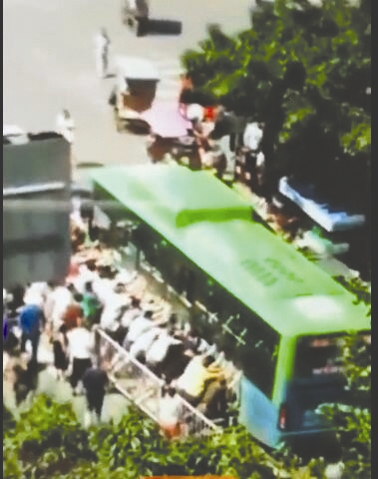 陳正龍立即高聲呼喊過(guò)路的市民營(yíng)救孩子,很快,有人撥打了報(bào)警電話(huà),數(shù)十位市民紛紛聚集過(guò)來(lái)。越來(lái)越多的人加入到救援隊(duì)伍里來(lái),人數(shù)增加后,大家又在指揮下,統(tǒng)一聚集到公交車(chē)左側(cè)面,想把公交車(chē)抬起,但盡管拼盡全力,也沒(méi)把公交車(chē)抬動(dòng)。