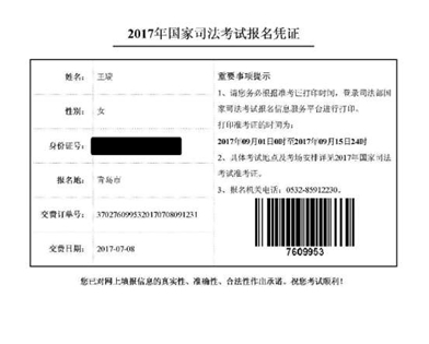 此后,王瑞的報名資格被通過。其提供的“2017年國家司法考試報名憑證”顯示,王瑞的司考報名地為青島市,于2017年7月8日完成交費(fèi)。