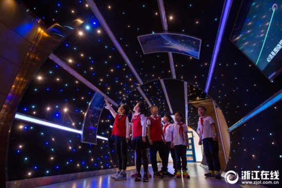 10月9日,杭州長江實(shí)驗(yàn)小學(xué),教學(xué)樓間的一條“星際隧道”群星璀璨,吸引了不少好奇的學(xué)生。