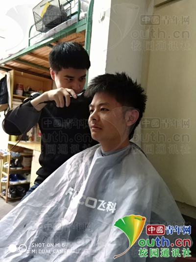 同學(xué)院學(xué)弟范龍濤接受采訪夸贊道:“學(xué)長(zhǎng)手藝精湛,吹剪洗一氣呵成!”范龍濤就是網(wǎng)傳視頻上學(xué)長(zhǎng)正在為其剪發(fā)的學(xué)弟,學(xué)長(zhǎng)剪得還行,跟他預(yù)期的差不多,關(guān)鍵是免費(fèi)。