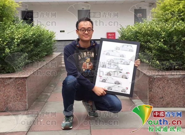記者了解到,該學(xué)生名叫蔣明杉,是成都文理學(xué)院美術(shù)學(xué)院廣告設(shè)計與制作專業(yè)的學(xué)生。蔣明杉表示,他從初中就開始繪畫汽車,到現(xiàn)在近8年時間,因為熱愛汽車,就一直堅持,已經(jīng)繪制近千幅作品。直到現(xiàn)在,他每天都在堅持繪畫,他相信自己會獲得更大的成功。
