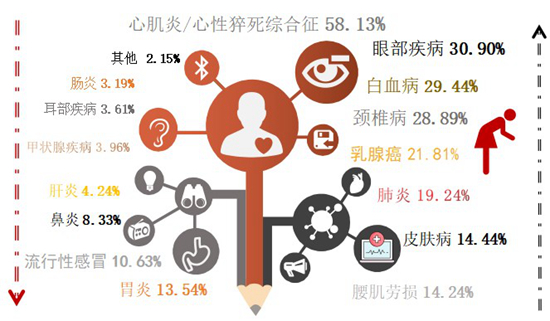 大學生最擔心罹患的疾病類型分布(%)。廉思課題組供圖