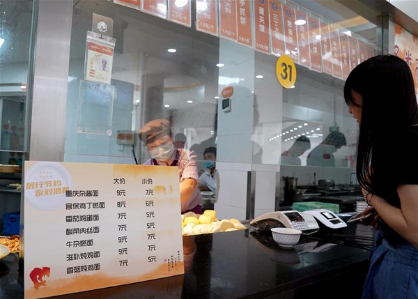 上海交通大學的食堂的各類面條實行大份、小份供餐。9月1日起,上海交通大學的學生開始分批、錯時到校開學。開學后,學校食堂加強節(jié)約糧食、光盤行動的宣傳,并采取多項措施引導師生員工文明用餐,杜絕浪費。