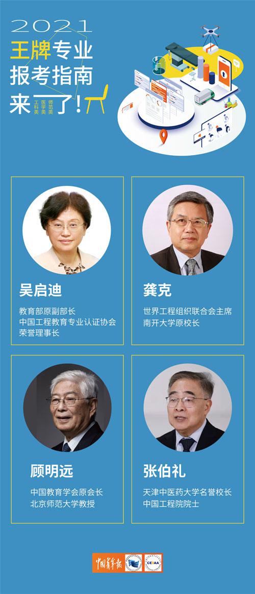 這幾天,隨著全國多個省份陸續(xù)公布高考分?jǐn)?shù)線,眾多考生進(jìn)入高考志愿填報(bào)階段——也許,這是他們迄今為止的人生中最重要的一場選擇。是選擇文科、理科還是工科?是看眼前的熱門還是看長久的發(fā)展?是選學(xué)校還是選專業(yè)?……在教育部高等教學(xué)評估中心和中國工程教育專業(yè)認(rèn)證協(xié)會的支持下,《中國青年報(bào)》特地采訪了四位學(xué)界“大咖”:教育部原副部長、中國工程教育專業(yè)認(rèn)證協(xié)會榮譽(yù)理事長吳啟迪,世界工程組織聯(lián)合會主席、南開大學(xué)原校長龔克,中國教育學(xué)會原會長、北京師范大學(xué)教授顧明遠(yuǎn),天津中醫(yī)藥大學(xué)名譽(yù)校長、中國工程院院士張伯禮。請他們以自己的人生的閱歷和經(jīng)驗(yàn)為考生們指點(diǎn)迷津。
