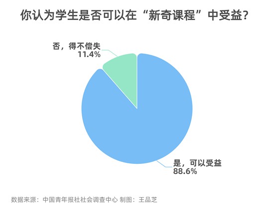 當(dāng)下,不少大學(xué)根據(jù)學(xué)生的需要開(kāi)發(fā)了一些令人耳目一新的課程?!皭?ài)情觀”養(yǎng)成課、海島野外求生訓(xùn)練課、游戲課……戀愛(ài)、社交、桌游等紛紛走進(jìn)大學(xué)課堂,有些受到學(xué)生的追捧,也有些讓大家覺(jué)得“奇葩”和“另類(lèi)”。你怎么看待這些“新奇課程”? 日前,中國(guó)青年報(bào)社社會(huì)調(diào)查中心聯(lián)合問(wèn)卷網(wǎng)(wenjuan.com),對(duì)2015名受訪者進(jìn)行的一項(xiàng)調(diào)查顯示,81.1%的受訪者聽(tīng)說(shuō)過(guò)高校中戀愛(ài)、桌游等“新奇課程”,71.1%的受訪者認(rèn)為高校在開(kāi)設(shè)“新奇課程”時(shí)要制訂完善的教學(xué)計(jì)劃和目標(biāo)。 81.1%受訪者聽(tīng)說(shuō)過(guò)高校中戀愛(ài)、桌游等“新奇課程” 北京某高校本科生張燁(化名)聽(tīng)說(shuō)過(guò)一些新奇的課程,像高爾夫、皮劃艇、電競(jìng)等?!斑@些偏門(mén)的課程如果是出于有益學(xué)生身心健康的出發(fā)點(diǎn),是可以的。但如果只是為了拓展技能,則沒(méi)必要專(zhuān)門(mén)開(kāi)設(shè)。如果各行各業(yè)都在高校開(kāi)設(shè)課程,那根本開(kāi)不過(guò)來(lái)”。 調(diào)查中,81.1%的受訪者聽(tīng)說(shuō)過(guò)高校中戀愛(ài)、桌游等“新奇課程”。對(duì)此,64.2%的受訪者認(rèn)為這類(lèi)課程理論與實(shí)踐相結(jié)合,寓教于樂(lè),62.4%的受訪者覺(jué)得新穎好玩,符合年輕人的需要,18.2%的受訪者認(rèn)為不實(shí)用,大多只是“曇花一現(xiàn)”。 廈門(mén)大學(xué)教育研究院院長(zhǎng)劉海峰說(shuō),現(xiàn)在我國(guó)各個(gè)高校的情況很不一樣,有些課程雖然看起來(lái)稀奇,但這些課程是隨著時(shí)代的變遷、社會(huì)的需求、學(xué)生的需求出現(xiàn)的。比如最開(kāi)始大家覺(jué)得動(dòng)漫不應(yīng)該成為一個(gè)學(xué)科,但隨著人們閱讀興趣的變化,開(kāi)設(shè)動(dòng)漫課程的學(xué)校也很多。 四川某高校本科生王鑫(化名)認(rèn)為現(xiàn)在社會(huì)對(duì)職業(yè)素質(zhì)的要求越來(lái)越高,這一類(lèi)“新奇課程”的開(kāi)設(shè),也標(biāo)志著高校的教學(xué)內(nèi)容更多元化?!霸谖覀儗W(xué)校就有烘焙類(lèi)、烹飪類(lèi)、休閑體育類(lèi)(下設(shè)高爾夫球課、健身課等)課程,這些課程更有趣味性,學(xué)生的積極性也很高。每次看到烹飪課下課的同學(xué)端著自己做的菜回來(lái),就也很想上這類(lèi)課程”。 王鑫認(rèn)為“新奇課程”也是順應(yīng)社會(huì)的發(fā)展,當(dāng)下職業(yè)更加多元化,“新奇課程”可以讓學(xué)生們更適應(yīng)社會(huì)變化,更能體現(xiàn)大學(xué)與中學(xué)的不同。 劉海峰說(shuō),新奇的課程一般不會(huì)成為主干課程,人文社科、自然科學(xué)的基礎(chǔ)知識(shí)類(lèi)課程才是“壓艙石”。但現(xiàn)在出現(xiàn)的新課程,可以成為正規(guī)的、成體系課程的補(bǔ)充,給一些有興趣、想要從事這類(lèi)行業(yè)的學(xué)生一個(gè)了解渠道,一般是為了適應(yīng)社會(huì)、學(xué)生的需要作為選修課開(kāi)設(shè)。而且這種課程比較小眾,個(gè)別學(xué)??梢蚤_(kāi),大部分學(xué)校不具備條件。比如說(shuō)龍舟課就需要有水的地方。 71.1%受訪者認(rèn)為高校在開(kāi)設(shè)“新奇課程”時(shí)要制訂完善的教學(xué)計(jì)劃和目標(biāo) “新奇課程”可以給學(xué)生帶來(lái)哪些方面的好處?72.1%的受訪者認(rèn)為為學(xué)生開(kāi)拓了其他領(lǐng)域的學(xué)習(xí)興趣,58.8%的受訪者認(rèn)為增長(zhǎng)了學(xué)生多方面的知識(shí)儲(chǔ)備,57.8%的受訪者認(rèn)為幫助學(xué)生平衡學(xué)科結(jié)構(gòu),33.6%的受訪者認(rèn)為是“素質(zhì)教育”的一種表現(xiàn)方式。 張燁覺(jué)得這些課程能讓學(xué)生了解相關(guān)領(lǐng)域的基本知識(shí),可以讓學(xué)生開(kāi)拓眼界、增加認(rèn)知。但如果學(xué)校不知道開(kāi)了這些新奇課程之后的效果,不確定課程是不是真的對(duì)學(xué)生的身心發(fā)展有好處,學(xué)生自己也不明白這些課程是在干什么,那就很盲目。 調(diào)查中,63.9%的受訪者指出目前高校開(kāi)設(shè)的“新奇課程”課程建設(shè)還不夠完善,沒(méi)有成熟的教學(xué)計(jì)劃,56.1%的受訪者認(rèn)為教師素質(zhì)有待驗(yàn)證,能否勝任成為問(wèn)題,37.1%的受訪者指出學(xué)生選課熱情不高,有些課人數(shù)太少,30.8%的受訪者覺(jué)得不能與實(shí)際生活相結(jié)合,沒(méi)有實(shí)用性,19.3%的受訪者認(rèn)為是把應(yīng)該課下或生活中體會(huì)、學(xué)習(xí)的東西硬搬到課堂上,16.8%的受訪者認(rèn)為背離了學(xué)校課程教育的宗旨,浪費(fèi)學(xué)時(shí)資源。 劉海峰認(rèn)為,開(kāi)設(shè)這一類(lèi)課程,一般來(lái)講還是要考慮是否能真正適應(yīng)社會(huì)和民眾的需求,而不是一味地追求好玩、新奇,如果一兩年就開(kāi)不下去了,其實(shí)沒(méi)多大意義。而且選修課一般是市場(chǎng)導(dǎo)向的,有人選就繼續(xù)開(kāi),沒(méi)人選就不開(kāi)。雖然從制度上講沒(méi)有問(wèn)題,但是從管理者的角度,開(kāi)設(shè)太多的課程還是沒(méi)太大意義,要考慮需求。 調(diào)查中,71.1%的受訪者認(rèn)為高校在開(kāi)設(s