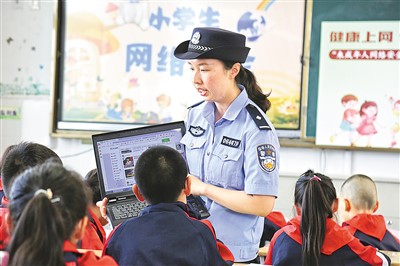 6月13日,江蘇省海安市公安局墩頭派出所民警走進(jìn)轄區(qū)小學(xué),開(kāi)展未成年人預(yù)防網(wǎng)絡(luò)沉迷和網(wǎng)絡(luò)陷阱的安全教育,引導(dǎo)鄉(xiāng)村兒童樹(shù)立正確的上網(wǎng)觀,做到文明健康上網(wǎng),增強(qiáng)網(wǎng)絡(luò)安全意識(shí)。周 強(qiáng)攝(人民視覺(jué))