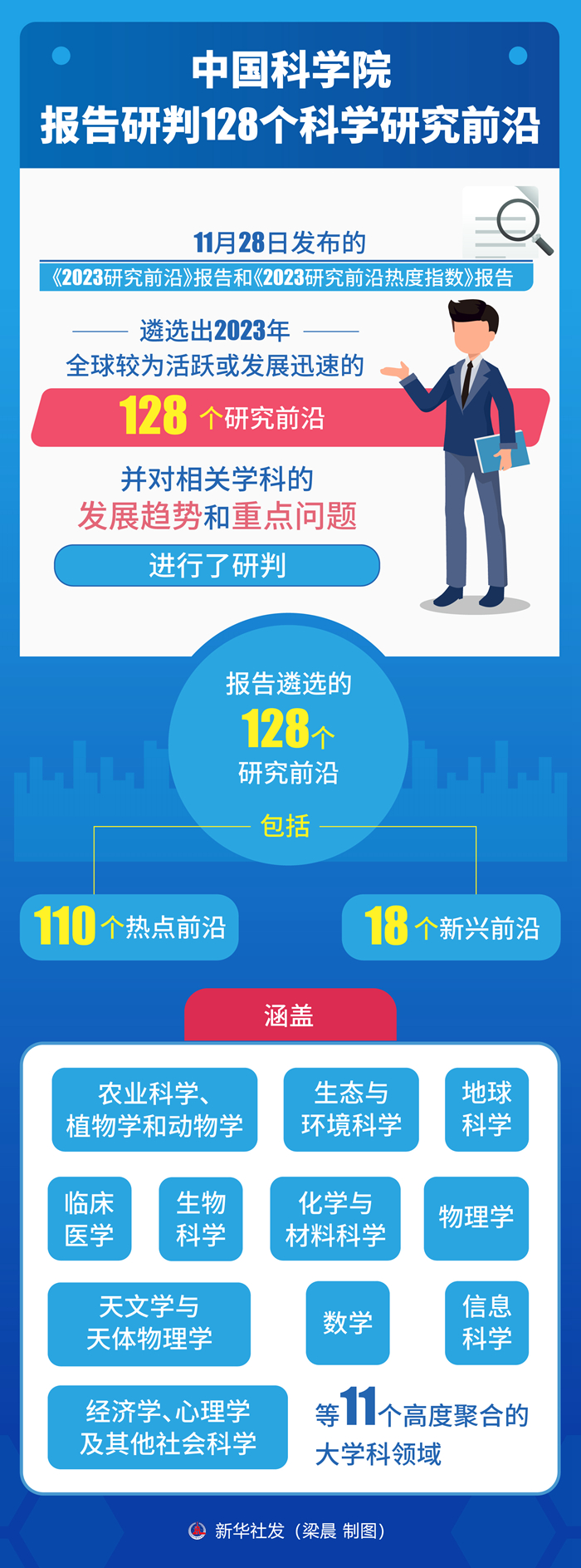 新華社北京11月28日電(記者張泉)28日發(fā)布的《2023研究前沿》報(bào)告和《2023研究前沿?zé)岫戎笖?shù)》報(bào)告,遴選出2023年全球較為活躍或發(fā)展迅速的128個(gè)研究前沿,并對相關(guān)學(xué)科的發(fā)展趨勢和重點(diǎn)問題進(jìn)行了研判。