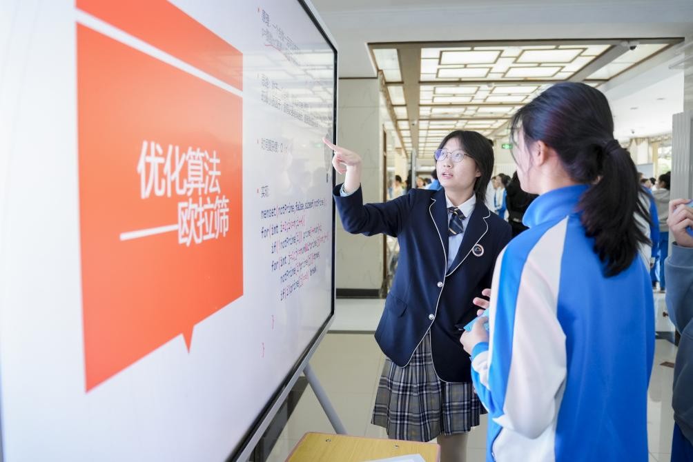 “數(shù)模筑夢(mèng)”板塊中,學(xué)生們展示了在數(shù)學(xué)建模方面的成果,在日常的生活和學(xué)習(xí)中,大模型工具提升了學(xué)生用數(shù)學(xué)的眼光看世界的能力,學(xué)生也不斷通過(guò)建模豐富著大模型的功能。