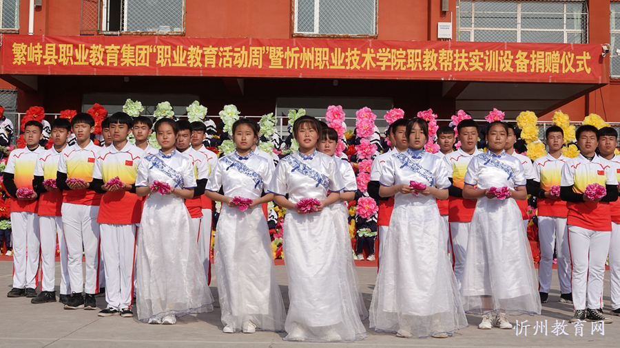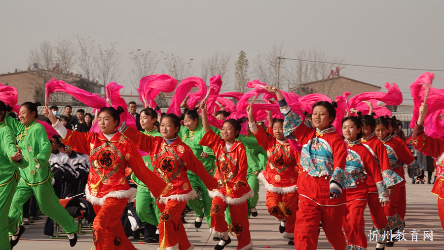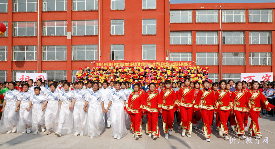 開幕式結(jié)束后,繁峙縣職業(yè)教育集團“職業(yè)教育活動周”主題活動——“大型廣場表演”正式開始。繁峙縣職業(yè)教育集團的師生們神形兼?zhèn)涞奈枳撕蛺偠鷦勇牭母韬?,贏得一陣又一陣的熱烈掌聲。
