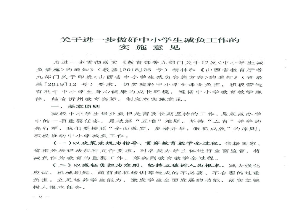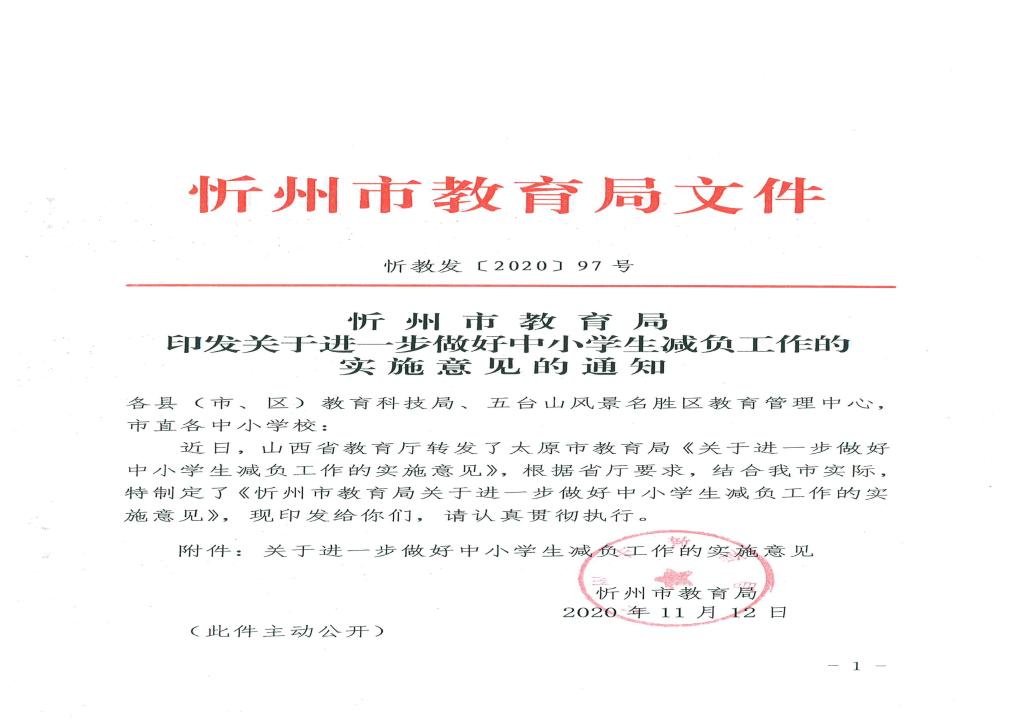 忻州市教育局印發(fā)關于進一步做好中小學生減負工作的實施意見的通知