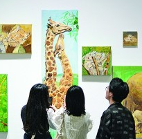 學(xué)生在2023南通大學(xué)藝術(shù)學(xué)院畢業(yè)展上參觀。徐培欽攝/光明圖片