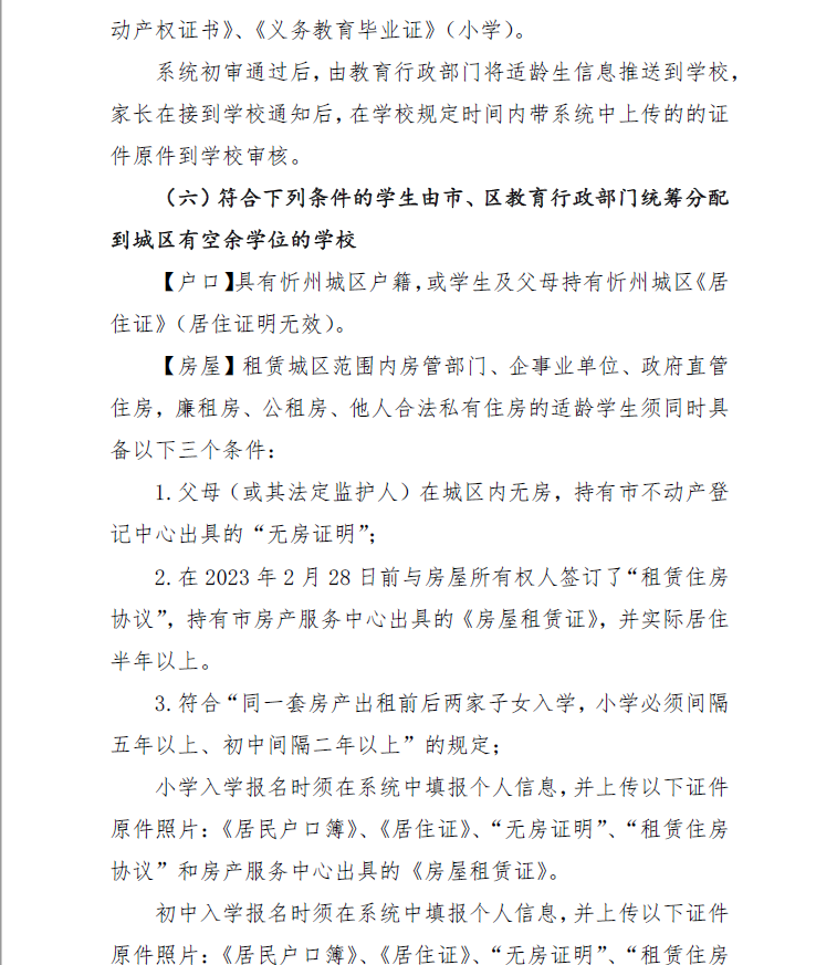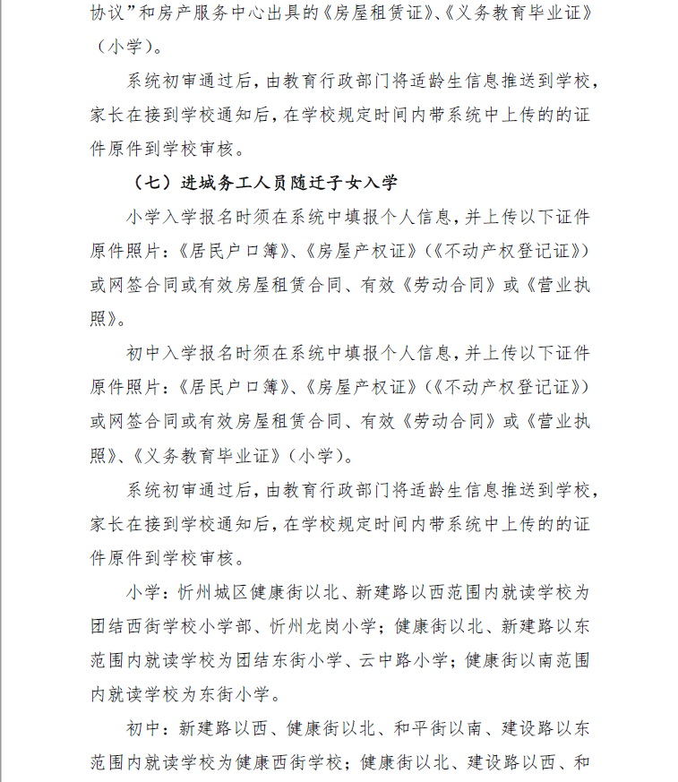 (四)8月8日,忻州市教育局統(tǒng)一組織忻州市北方中學(xué)、忻州現(xiàn)代雙語學(xué)校、忻州市康樂小學(xué)、忻州師范學(xué)院附屬外國語中學(xué)、忻州實驗中學(xué)五所學(xué)校進行搖號,并及時公布錄取結(jié)果。8月9日至10日,辦理入學(xué)手續(xù)。