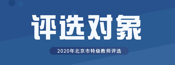 近日,北京市教委、北京市人力資源社會保障局啟動2020年新一批北京市特級教師評選工作,本市幼兒園、中小學(xué)、職業(yè)高中等學(xué)校2019年12月31日前在職在崗的符合參評條件的教師均可申報(bào)。