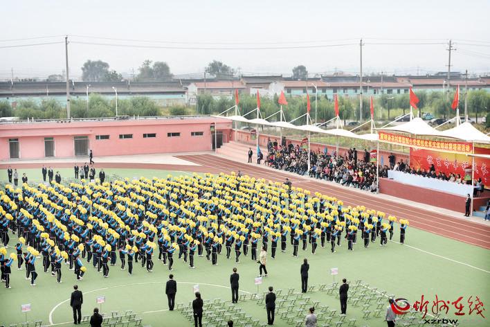 9月27日上午10點整,寬闊的綠茵操場上,彩旗飄揚,鼓樂喧天。由700多名小學生組成的整齊的方陣,在環(huán)形跑道上健步前行。鮮花舞動,口號震天??磁_上人頭攢動,掌聲如潮……這是繁峙縣教育科技局在筆峰小學組織召開的全縣農(nóng)村寄宿制小學課程改革交流研討暨培訓活動七大程序中的第三項內容——文體藝術成果大型展示的入場式。
