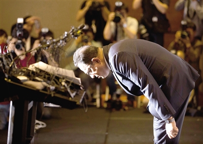 5月2日,在韓國(guó)首爾,利潔時(shí)韓國(guó)子公司負(fù)責(zé)人阿塔爾·薩夫達(dá)爾在記者會(huì)上鞠躬道歉。 英國(guó)日用品公司利潔時(shí)韓國(guó)子公司2日在首爾召開記者會(huì),就“加濕器殺菌劑致死事件”向韓國(guó)國(guó)民道歉并提出賠償方案。2011年韓國(guó)有多人因罹患不明原因的肺病而死亡,一度在韓國(guó)社會(huì)引發(fā)恐慌。韓國(guó)保健福祉部疾病管理本部經(jīng)調(diào)查后認(rèn)定,加濕器殺菌劑是導(dǎo)致不明肺病的元兇。 新華社/美聯(lián)