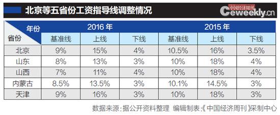 企業(yè)工資指導(dǎo)線(下稱“工資指導(dǎo)線”)從1997年出臺(tái),至今已20年。按照慣例,各省份在每年上半年就會(huì)發(fā)布。不過,截至7月20日,《中國經(jīng)濟(jì)周刊》記者發(fā)現(xiàn),僅有天津、北京、山東、山西、內(nèi)蒙古等五省份發(fā)布了2016年工資指導(dǎo)線,并且多是下調(diào)基準(zhǔn)線。