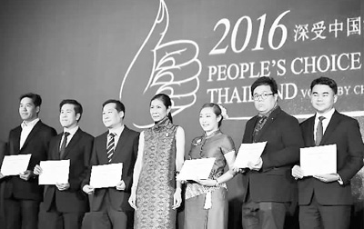 泰國(guó)國(guó)家旅游局此前公布2016年度“最受中國(guó)游客歡迎獎(jiǎng)”評(píng)選結(jié)果,希望評(píng)選能促進(jìn)泰國(guó)旅游業(yè)質(zhì)量不斷提高,吸引更多中國(guó)游客。圖為頒獎(jiǎng)典禮上,泰官員為獲獎(jiǎng)機(jī)構(gòu)代表頒發(fā)獲獎(jiǎng)證書。新華社記者 李芒茫攝