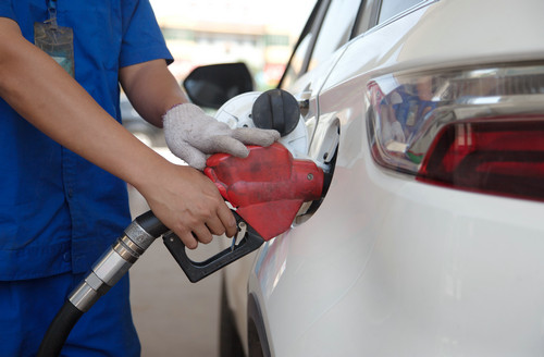 資料圖片:5月25日,河北省武邑縣一家加油站的工作人員在為汽車加油。新華社記者 朱旭東 攝