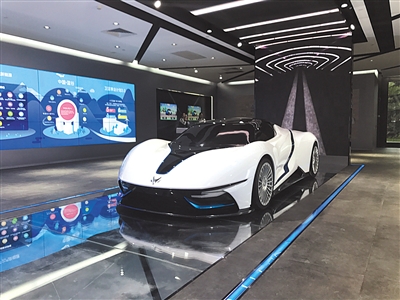 北汽新能源展廳內(nèi)展示的旗下首款純電動(dòng)超級(jí)跑車ARCFOX-7。