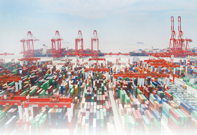 洋山深水港四期無人碼頭集裝箱堆場。 新華社記者 方 喆攝