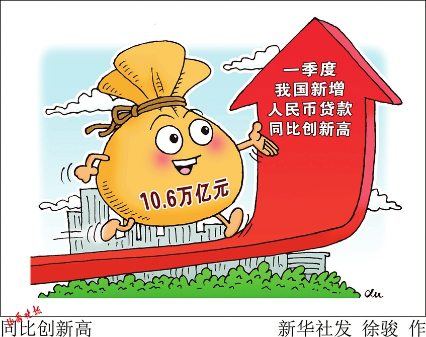 據(jù)新華社電 我國首季金融統(tǒng)計數(shù)據(jù)4月11日出爐,當季新增人民幣貸款同比創(chuàng)新高。中國人民銀行當日發(fā)布的數(shù)據(jù)顯示,一季度我國人民幣貸款增加10.6萬億元,同比多增2.27萬億元。其中,3月份人民幣貸款增加3.89萬億元,同比多增7497億元。