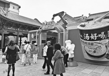 “什么!方便面也有主題店?”5月3日,山西晚報記者在鐘樓街上有了驚奇的發(fā)現(xiàn)。跟隨著腳下的指示圖標(biāo),在步行街鐘樓后廣場上,一個白象泡面工廠沉浸式主題店出現(xiàn)在眼前,巨大的方便面桶從房間里伸出,視覺沖擊力極強,吸引很多年輕人進店打卡。店內(nèi)擺放著從面片制作成面條,最終成為方便面面餅的仿真模型,以及制作方便面時工人所穿的工服。只要按要求做完打卡“任務(wù)”,還能免費獲得一桶寫有自己名字的專屬方便面。據(jù)現(xiàn)場工作人員介紹,這個泡面工廠“五一”期間每天有三四萬人光顧,“沒想到逛街還能逛到這樣有趣的體驗店,我完成了打卡任務(wù),給孩子拿了一桶寫有他名字的方便面,感覺太有趣了!”現(xiàn)場一位女士高興地說。