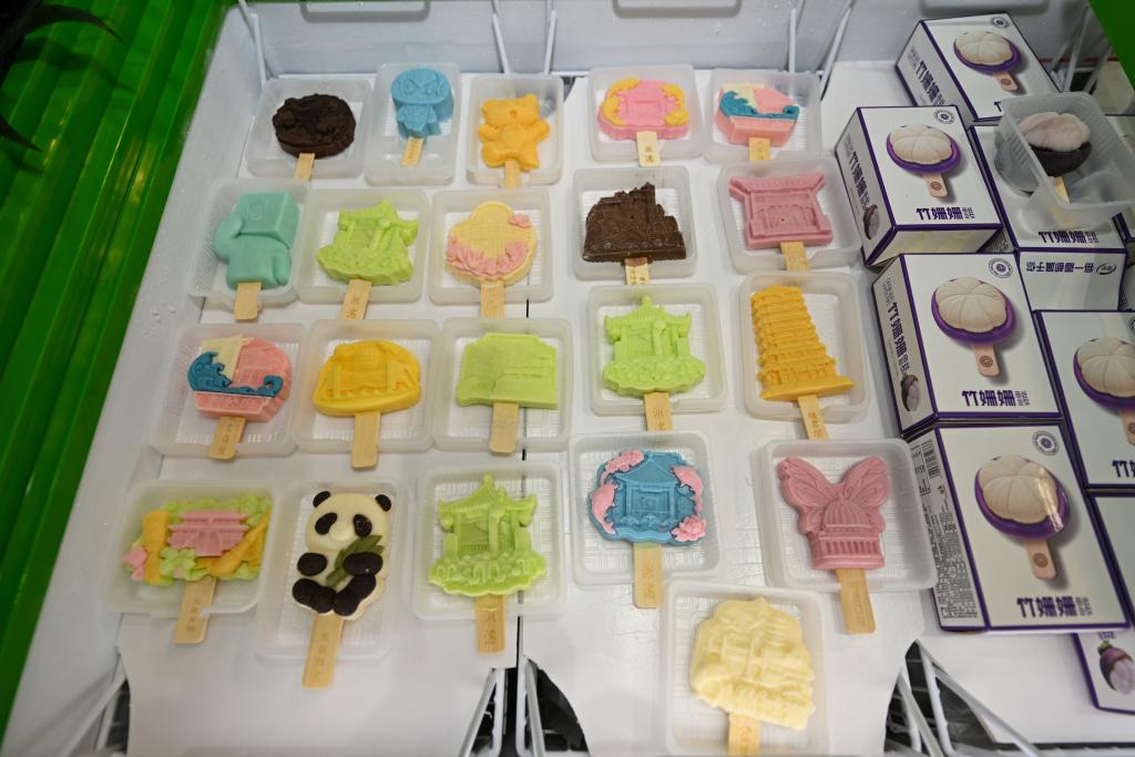 9月26日,參展商在博覽會現(xiàn)場展示兩款高校主題文創(chuàng)冰淇淋。新華社記者 孫凡越 攝 “除了減少糖分和卡路里外,一些冰淇淋品牌還開始添加具有健康益處的成分,如益生菌、膳食纖維等。這些成分不僅提升了冰淇淋的營養(yǎng)價值,還賦予了產(chǎn)品更多的健康賣點?!睆埿『胝f。 光明乳業(yè)是中國領(lǐng)先的乳制品生產(chǎn)商之一,近期上海益民食品一廠有限公司推出了輕乳系列產(chǎn)品。 “這些產(chǎn)品減少了50%的蔗糖,有些還添加了膳食纖維,小杯設(shè)計也便于消費者控制熱量?!痹诠饷魅闃I(yè)展臺上的張敏懿介紹道。 中國的德氏集團有多款產(chǎn)品出口至美國、加拿大、新西蘭等國家和地區(qū)?!拔覀冊诋a(chǎn)品的原料添加和外觀設(shè)計方面,始終秉持著天然與健康的原則。在走向海外市場時,我們不斷和海外合作商溝通交流,一起探索冰淇淋產(chǎn)品創(chuàng)新和健康升級新的可能性?!痹摷瘓F營銷總監(jiān)孟杰說。