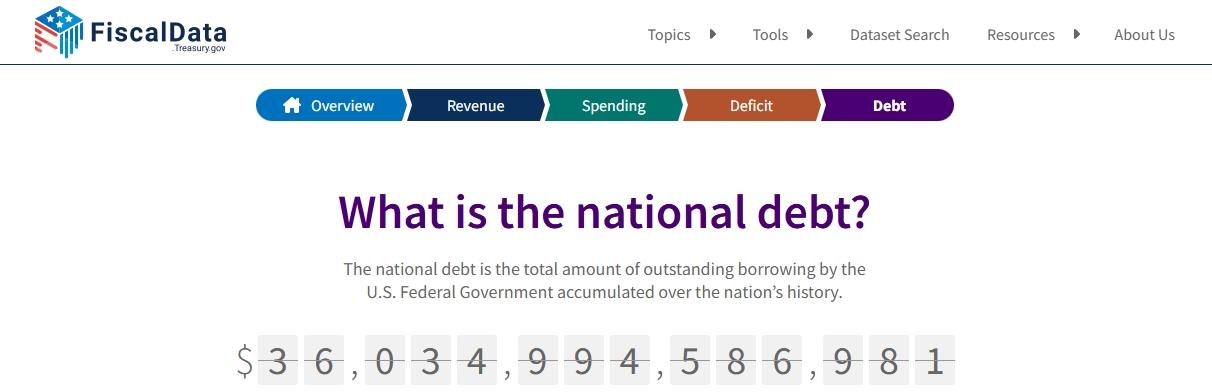 △美國財(cái)政部下屬的財(cái)務(wù)數(shù)據(jù)網(wǎng)站當(dāng)前數(shù)據(jù)顯示,美國聯(lián)邦政府債務(wù)總額已達(dá)到36.034萬億美元。