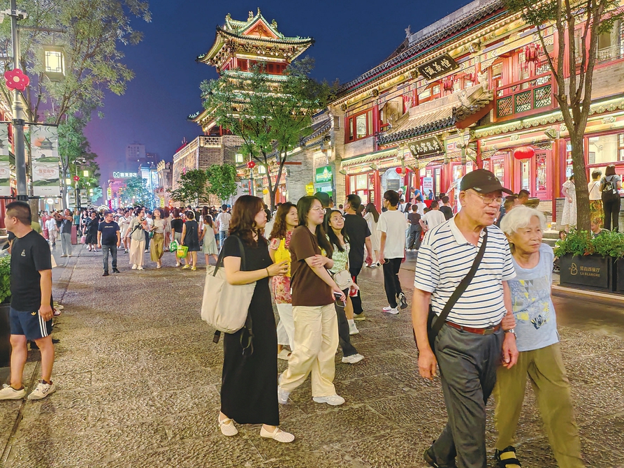 8月2日,入夜后的太原市鐘樓街燈火璀璨、熱鬧非凡,市民們來此散步休閑、購物娛樂,體驗(yàn)多元消費(fèi)業(yè)態(tài)。