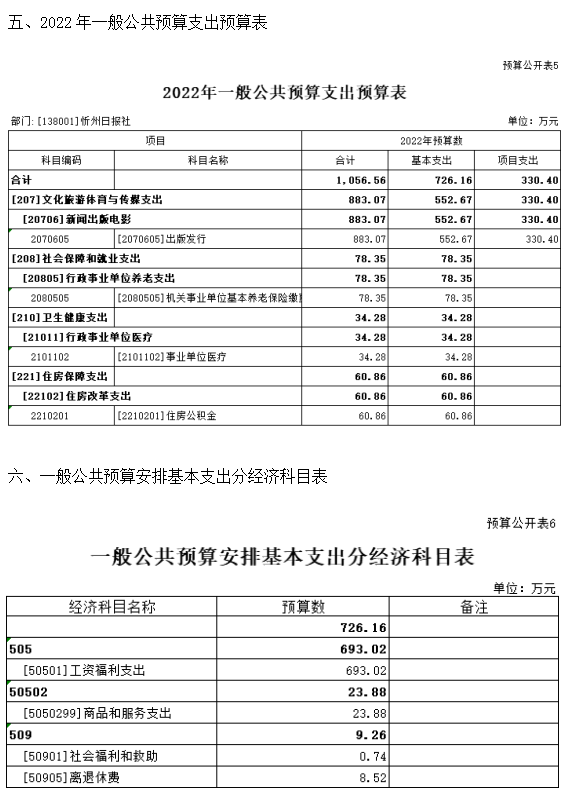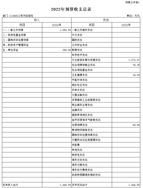 忻州日報社2022年度預算公開情況