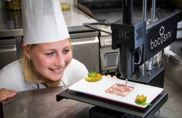 一家號稱全3D打印的餐館將于7月晚些時候在英國倫敦開張,不僅所有食物是3D“打印”而成,連餐桌、餐椅、燈具和餐具都出自這種技術。這家名為“食物墨水”的餐館將提供9種3D打印菜肴,并在網(wǎng)上直播“烹飪”過程。除了吃飯,顧客還可以在這家高技術氛圍濃厚的餐館體驗虛擬現(xiàn)實技術,欣賞電腦創(chuàng)作的音樂。餐館方面沒有透露3D打印菜肴的細節(jié),只說食物主要原料將呈醬狀,打印菜肴的過程類似面點師用擠花袋把奶油擠在蛋糕上做造型?!笆澄锬比司M250英鎊(約合2220元人民幣)的高價位招來質疑:誰會花這么多錢吃一堆擠在塑料餐具里的漿糊?