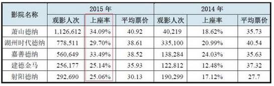 3、其2015年平均上座率為29.5%,遠(yuǎn)超全國(guó)平均水平,其影院運(yùn)營(yíng)能力需足夠強(qiáng)才能達(dá)此水平。