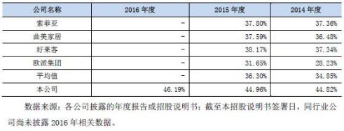2014至2016年同行業(yè)公司綜合毛利率對比(來源:招股書)