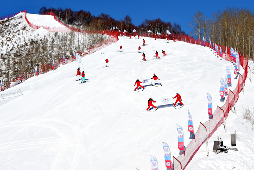 資料圖片:來(lái)自全國(guó)各滑雪場(chǎng)的代表在河北崇禮云頂滑雪場(chǎng)參加活動(dòng)。新華社記者楊世堯攝