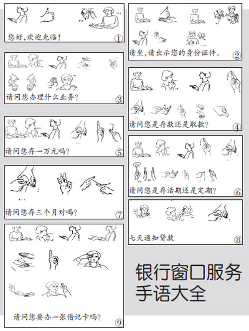 策劃人語 聾啞人辦理銀行業(yè)務(wù),無疑是一件困難的事情,他們擔(dān)心辦理時(shí)溝通困難,還往往會找個(gè)人陪著一起去。不過如果銀行的人員會手語,這些就不是問題了。在交通銀行忻州市分行營業(yè)部的員工人人都會基本的手語,每當(dāng)特殊客戶前來銀行辦理業(yè)務(wù),都會感到十分的暖心。