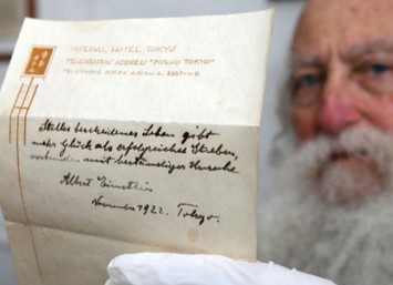 科學(xué)家阿爾伯特·愛(ài)因斯坦一張對(duì)一位年輕女子表達(dá)傾慕的手寫(xiě)字條6日在耶路撒冷一場(chǎng)拍賣(mài)會(huì)上以6100美元成交。