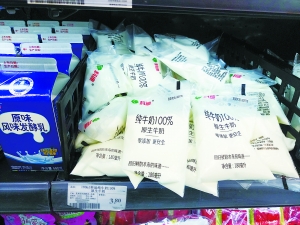 在消費觀念轉(zhuǎn)變下,消費者對乳制品的消費也在提升。在各大賣場中,冷柜中的鮮牛奶愈加受到消費者喜愛。消費者購買牛奶圖的是新鮮,巴氏奶由于儲存時間短,被看做是對鮮奶的最好詮釋。但是,目前一些常溫奶也“擠”進(jìn)了巴氏奶陣營。北京商報記者在走訪中發(fā)現(xiàn),與巴氏奶“比鄰而居”的通常是一些透明包裝袋的牛奶產(chǎn)品,這些透明包裝的牛奶就是科迪乳業(yè)生產(chǎn)的小白奶。
