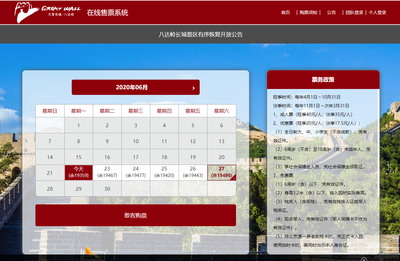 記者注意到,截至6月22日,北京最熱門的景區(qū)之一八達(dá)嶺長城在端午期間每日仍有近2萬票。不過故宮博物院門票已售罄。