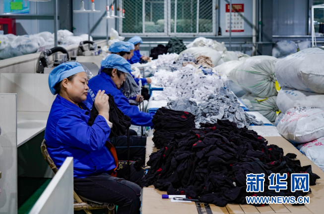 代縣扶貧產(chǎn)業(yè)園區(qū)雁弘紡織有限公司內(nèi),搬遷后的群眾實現(xiàn)了家門口就業(yè)。新華網(wǎng) 發(fā)