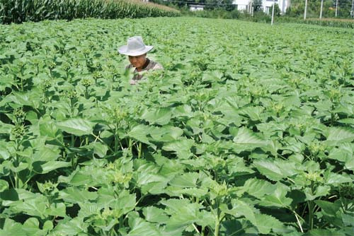 近年來,原平市積極引導(dǎo)農(nóng)民大力發(fā)展特色種植業(yè),有效促進(jìn)農(nóng)民增產(chǎn)增收,加快致富奔小康。圖為8 月26 日原平市小河村農(nóng)民正在地里管理長勢喜人的墨葵。趙春曉 攝