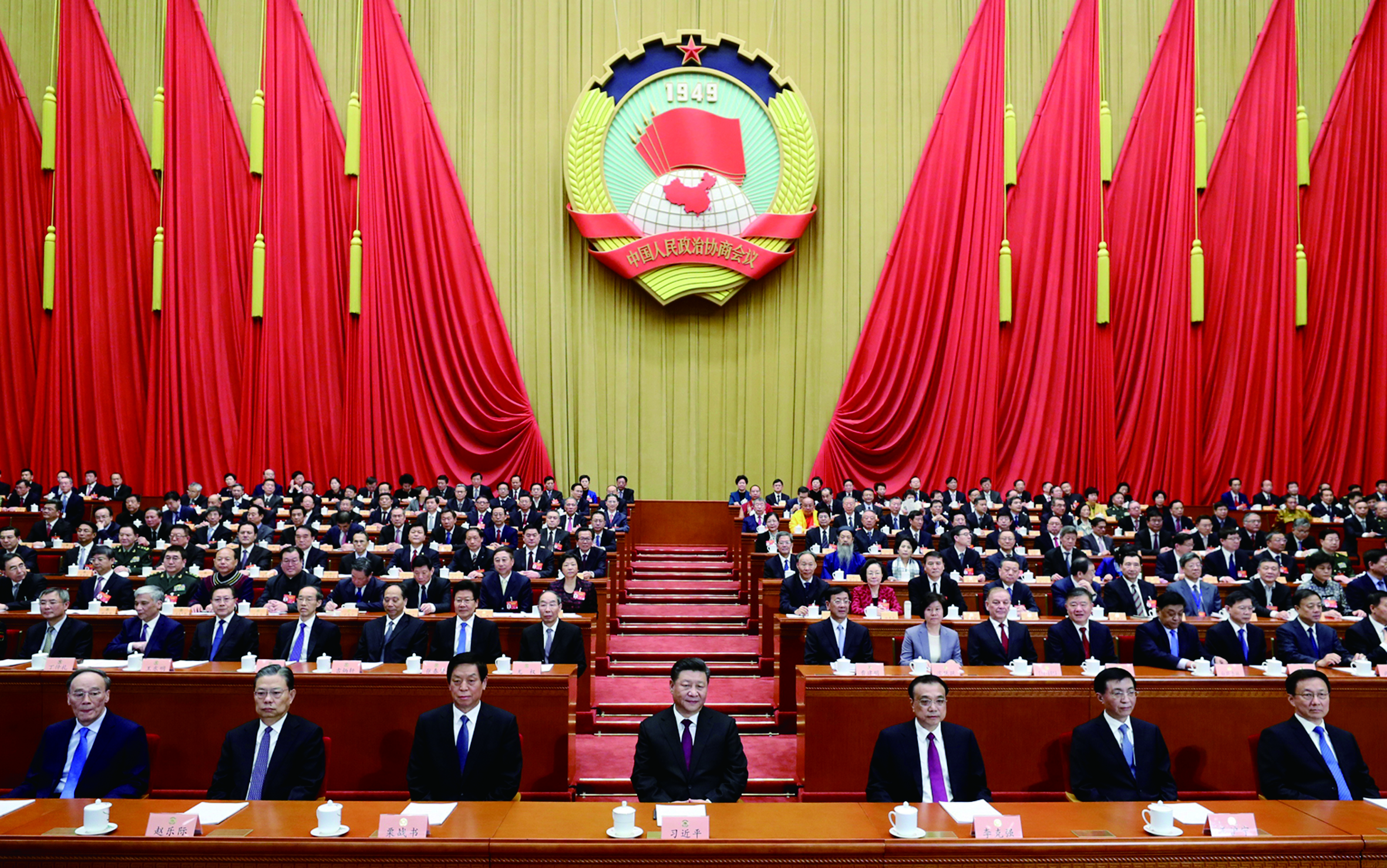 3月3日,中國人民政治協(xié)商會議第十三屆全國委員會第二次會議在北京人民大會堂開幕。這是習(xí)近平、李克強、栗戰(zhàn)書、王滬寧、趙樂際、韓正、王岐山在主席臺就座。新華社記者鞠鵬攝