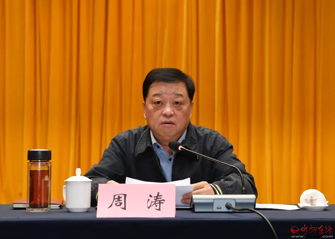 周濤講話 丁英才反饋督導(dǎo)情況 鄭連生主持并講話 朱曉東作表態(tài)發(fā)言