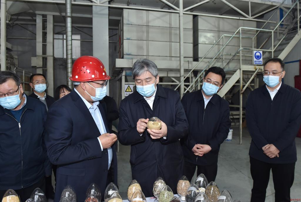 農(nóng)用物資儲(chǔ)備關(guān)系春耕備耕開展。在五臺(tái)縣山西嘉瑞種業(yè)有限公司、定襄縣鑫豐盛農(nóng)業(yè)科技有限公司,朱曉東實(shí)地察看并詳細(xì)了解化肥、農(nóng)藥、籽種等物資儲(chǔ)備情況,詳細(xì)了解籽種種植、加工、生產(chǎn)情況,聽取大豆玉米帶狀復(fù)合種植實(shí)施技術(shù)介紹并察看相關(guān)機(jī)械設(shè)備。朱曉東指出,種子是農(nóng)業(yè)的“芯片”,忻州雜糧種子資源豐富,要以市場(chǎng)需求為導(dǎo)向,堅(jiān)持育種引種并重、良種良法配套、農(nóng)機(jī)農(nóng)藝融合,聚焦主要品種、關(guān)鍵環(huán)節(jié),匯聚資源、集中攻關(guān),助推農(nóng)業(yè)種業(yè)向“特”“優(yōu)”方向發(fā)展,確保農(nóng)業(yè)穩(wěn)產(chǎn)保供、農(nóng)民穩(wěn)步增收、農(nóng)村穩(wěn)定和諧。