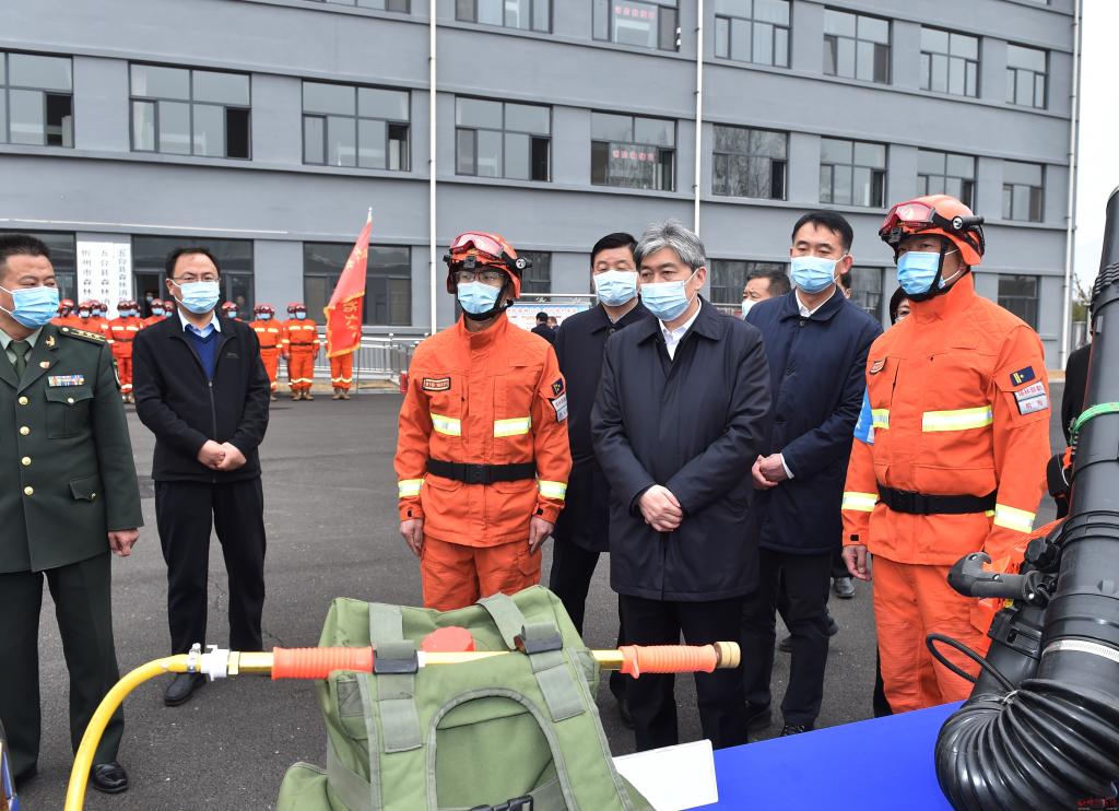 當(dāng)前已經(jīng)進(jìn)入森林防火特險(xiǎn)期,在內(nèi)蒙古森林消防總隊(duì)指戰(zhàn)員駐防五臺(tái)縣東雷鄉(xiāng)應(yīng)急救援訓(xùn)練基地,朱曉東專程慰問(wèn)指戰(zhàn)員并檢查應(yīng)急物資儲(chǔ)備情況。他希望森防總隊(duì)保持高度臨戰(zhàn)狀態(tài),發(fā)揮專業(yè)護(hù)林滅火優(yōu)勢(shì),持續(xù)強(qiáng)化應(yīng)急演練,結(jié)合五臺(tái)地形氣候?qū)嶋H,以實(shí)戰(zhàn)化演練為導(dǎo)向,完善應(yīng)急預(yù)案,練就過(guò)硬本領(lǐng);同時(shí)要發(fā)揮所長(zhǎng),把好經(jīng)驗(yàn)好辦法傳授給地方應(yīng)急隊(duì)伍,幫助地方打造有生力量。市縣相關(guān)部門要全方位服務(wù)保障到位、學(xué)習(xí)借鑒到位,通力合作堅(jiān)決打贏護(hù)林防火攻堅(jiān)戰(zhàn)。在定襄縣林業(yè)局聽取森林防火預(yù)警監(jiān)控系統(tǒng)運(yùn)行情況后,朱曉東指出,護(hù)林防火重在防,要堅(jiān)持人防加技防,把人員力量布設(shè)到位,切實(shí)把好入山進(jìn)林關(guān)卡,強(qiáng)化檢查督導(dǎo),堅(jiān)決禁止火源上山,確保實(shí)現(xiàn)火險(xiǎn)火情“打早打小打了”。