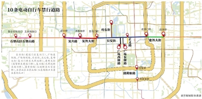 下周一(4月11日)起,長安街及其延長線等10條道路,將禁止電動自行車通行。硬闖上路的將被處以20元罰款,拒絕接受處罰的一律扣車。