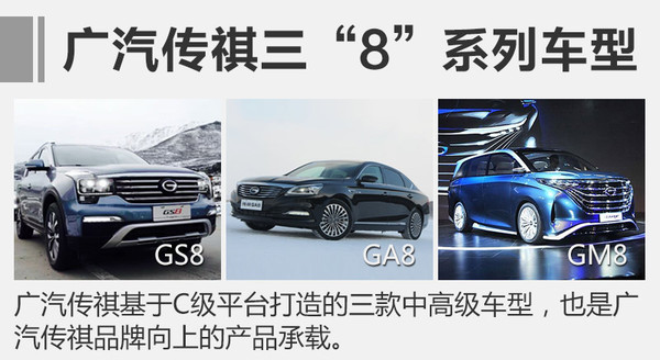 為達到“品牌向上”的效果,廣汽傳祺還將加大中高級車型的布局,包括旗下三“8”系列車型。其中轎車車型GA8已上市,另一款“8”系列的SUV車型GS8也已正式上市,未來還有一款MPV車型GM8。這些車型的加入,將使得廣汽傳祺在銷量和品質(zhì)上大幅提升。(圖/文 網(wǎng)通社 姜微)