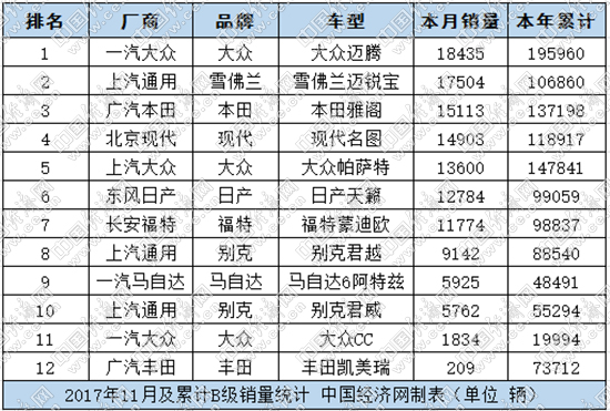 11月,合資B級(jí)車市場(chǎng)中,共有7款車型銷量過(guò)萬(wàn),除了上面提到的邁騰、帕薩特和雅閣之外,還有天籟、蒙迪歐、名圖和邁銳寶?;仡^來(lái)看,合資B級(jí)車市場(chǎng)在下半年走出一股“上揚(yáng)波浪”,最近3個(gè)月,保持了6款以上車型銷量過(guò)萬(wàn)的成績(jī),這一現(xiàn)象在往年很難看到。
