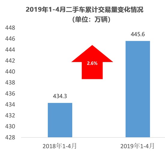 二手車方面,4月全國(guó)二手車市場(chǎng)交易量為120.06萬輛,環(huán)比下降4%,同比增長(zhǎng)4.29%;1-4月,二手車?yán)塾?jì)銷售445.63萬輛,同比增長(zhǎng)2.61%。