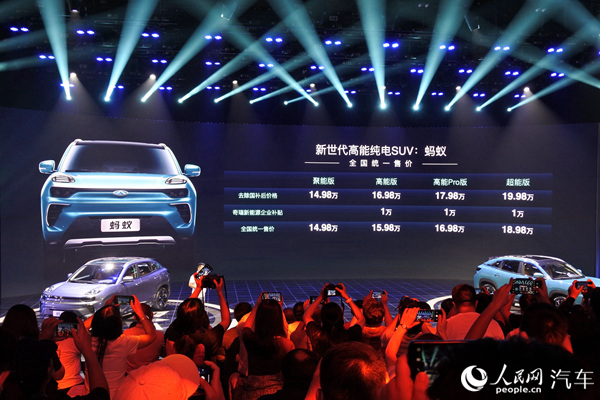 人民網(wǎng)北京9月23日電(鄂智超)日前,奇瑞新能源旗下全新純電動(dòng)SUV螞蟻正式上市,今后“螞蟻”將成為奇瑞新能源旗下的完善產(chǎn)品系列。新車以“@LIFE平臺(tái)”打造,NEDC續(xù)航里程達(dá)510公里,提供聚能版、高能版、高能Pro版以及超能版四款版型,補(bǔ)貼后售價(jià)14.98萬(wàn)元起。奇瑞汽車還宣布,螞蟻將提供終身整車質(zhì)保。