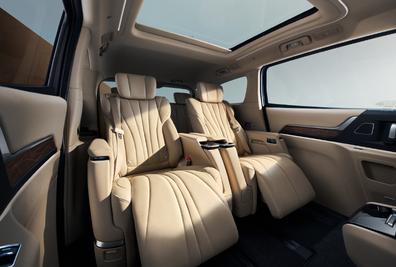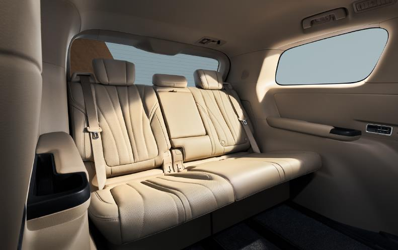 別克世紀(jì)CENTURY七座臻享款采用“2+2+3”座椅布局,搭載創(chuàng)新的二三排共用縱向電動長滑軌設(shè)計,可以讓二/三排座椅分別實現(xiàn)超長行程的電動前后移動。其第二排配備高級打孔真皮航空座椅,支持14向全電動調(diào)節(jié)、椅背最大可調(diào)節(jié)至171度、3檔加熱/通風(fēng)/位置記憶、10點式按摩功能,并囊括一體展開式電動腿托和電動無級調(diào)節(jié)腳踏、翻折小桌板、無線充電手機槽,內(nèi)側(cè)扶手集成的滑動式6吋智能觸控屏還可對座椅、車窗、后排天窗遮陽簾、空調(diào)進行控制。第三排劇院式座椅寬綽舒適,可供3位成年人從容乘坐,下翻式中央扶手可4/6分單獨調(diào)節(jié)、椅背最大傾斜角度達132度、且座墊支持電動翻折。當(dāng)座墊折起時,第三排可進行前后720mm超長行程電動滑動,實現(xiàn)靈活高效的空間利用。